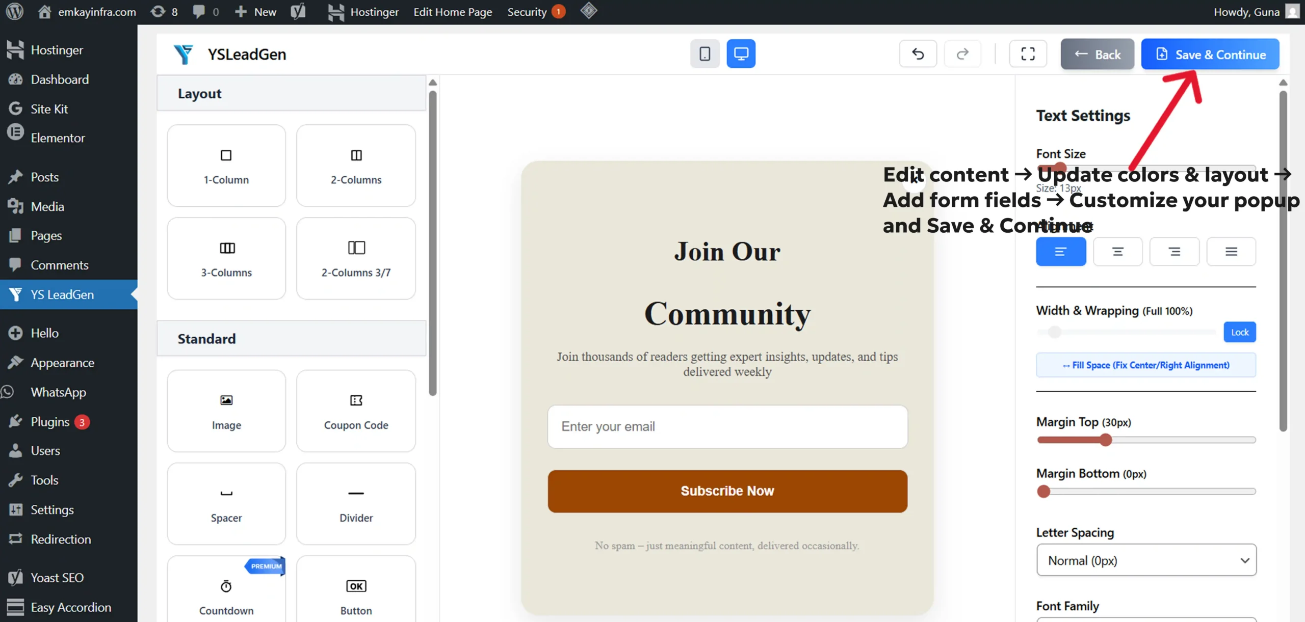 If you want to grow your email list, boost engagement, recover lost sales, or highlight your best offers, creating a popup with YS LeadGen is one of the most effective steps you can take today.